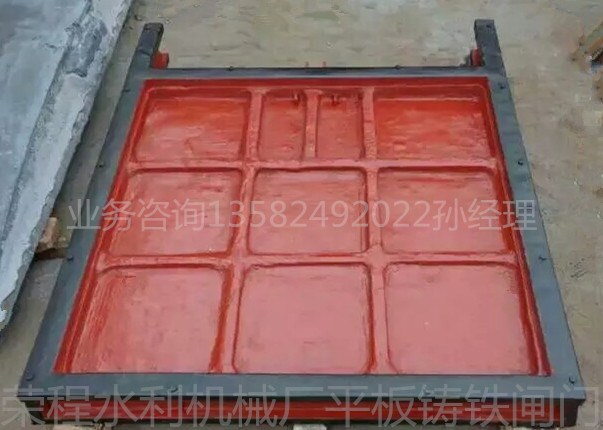 單向止水鑄鐵閘門的閘框是閘板的支承構件,也是閘板的運行滑道,由地腳螺栓安裝固定在水閘閘墩及閘底板的二期混凝土中,將閘板所承受的全部水壓力安全傳遞到閘室中。為科學合理節約材料及減輕自重,其斷面制成格構式,斷面尺寸按所受荷載大小和閘板運行情況綜合考慮。閘板是用來封閉和開啟孔 口的活動擋水構件, 板面四周設鑄鐵邊框梁 , 為提高閘板的強度 , 板面制成拱形, 拱的圓心角按 6 0 度設計,以降低其所受的水壓力。為便于制造、 運輸和安裝 , 閘板可制成上下幾部分 ,待到安裝現場后再用螺栓連接組裝成整體 ,連接處上下板設置法蘭和筋板使其成為閘板的中間橫梁, 以提高閘板的縱向剛度 , 在寬度方向設置縱向筋板 ,以提高其橫向剛度,同時起到縱梁的作用。